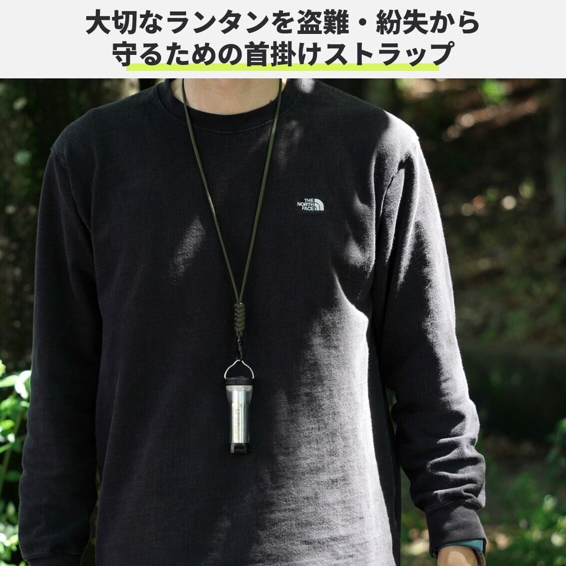 懐中ライトの代わりになる小型ランタンをストラップを首に掛けたまま使用することが可能な絶妙な長さです。